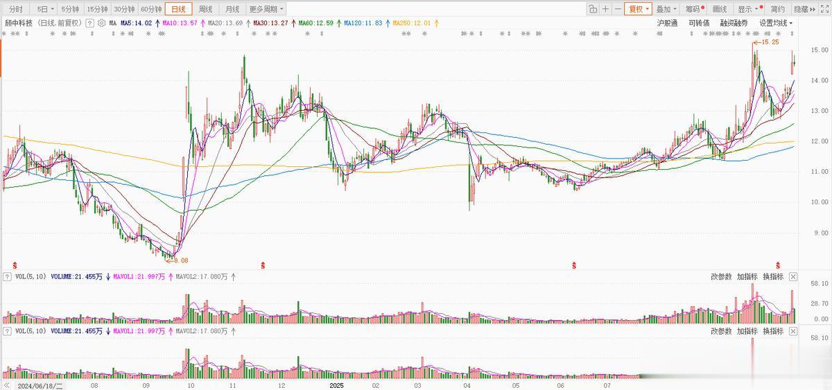近一年来,颀中科技股价已有80%左右的上涨幅度,股价处于近长期来的股价高点附近,短期内股价具有一定的回调风险。