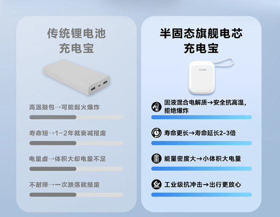 为了解决充电宝普遍存在的快充安全情况,新推出的西圣PB-S以革命性的半固态电池技术为核心,配合多重控温技术和严苛品质管理,突破传统液态锂电池的安全局限,在保障高效快充的同时实现全方位安全防护。