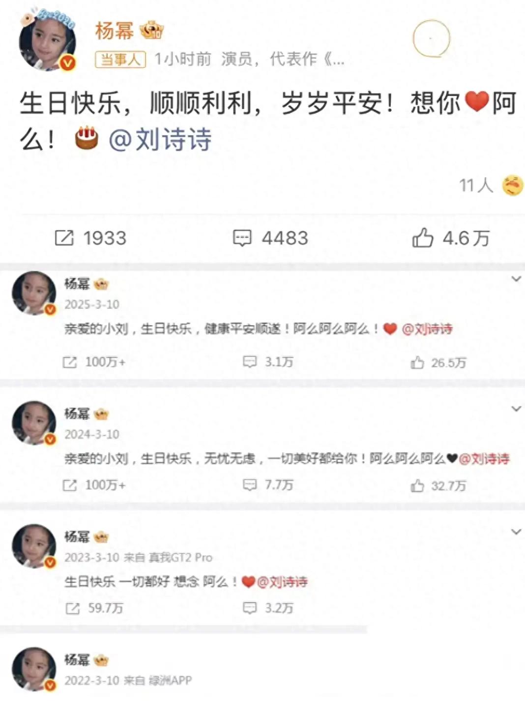 这些年,娱乐圈的“限定好友”见得太多了。剧播的时候是亲姐妹,剧终了就是陌生人。更有甚者,前脚刚发完生日祝福,后脚就在背地里截对方的胡。这种大环境下,这种不带任何商业捆绑、不炒作所谓的“诗幂CP”复兴、甚至平时连个赞都不怎么互点的相处方式,反而显得比金子还真。