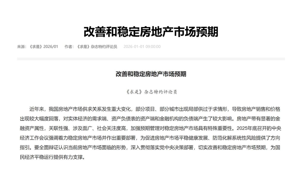 2025年底中央经济工作会议明确“稳地产”并部署任务,2026年是“十五五”开局,政策不只是救急,更要建长效——比如优化公积金、推“好房子”、完善开发融资销售制度。《求是》杂志所发表的《改善和稳定房地产市场预期》便强调了,政策力度要一次给足,避免市场和政策反复博弈。