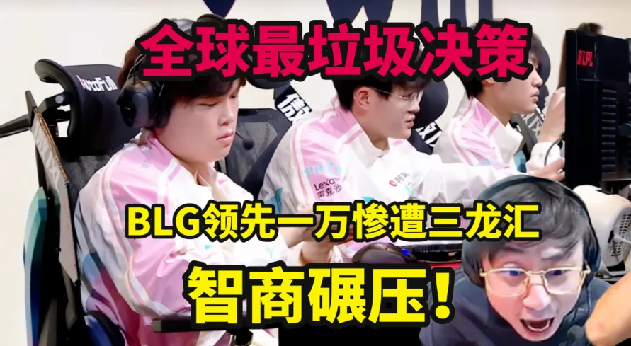 事实上这场BO5中双方的发挥也的确如此,BLG在对线阶段几乎是完爆JDG,只有Gala能勉强做到在线上稳住,第一局BLG在30分钟时就手握近6K的经济优势,结果却在大型资源团的决策上出现了巨大失误——选择用rush大龙来换JDG的电龙魂,这也为后续翻盘埋下伏笔。