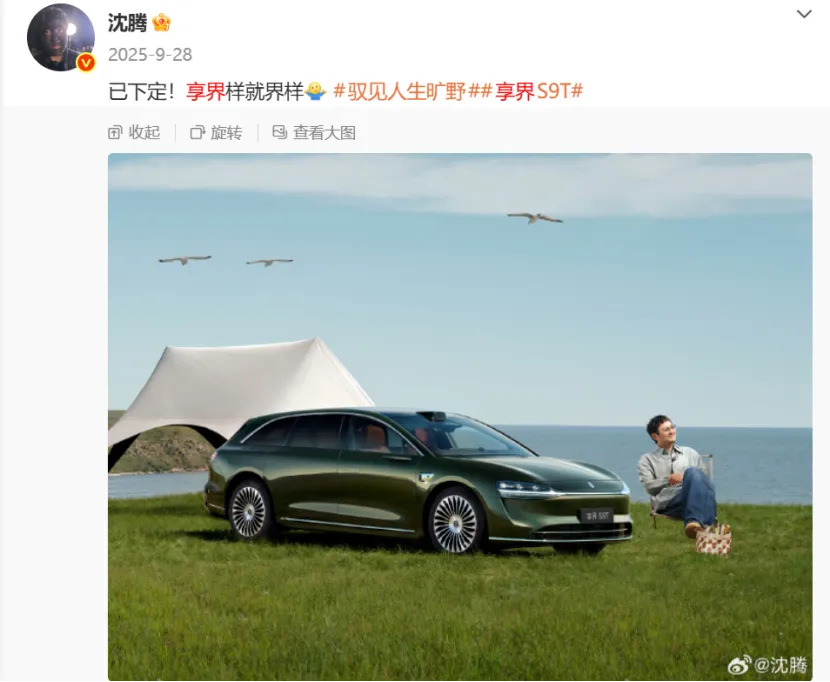 “最创意”来自享界x沈腾的合作,该说不说,咱享界品牌大使搁那儿一站就是笑料,拍摄的《享界样,就界样》魔性广告片完全可以当喜剧片来享用,腾哥还在社交媒体大方晒出购买享界S9T的订单,甚至为自己和新车P了张合体图。