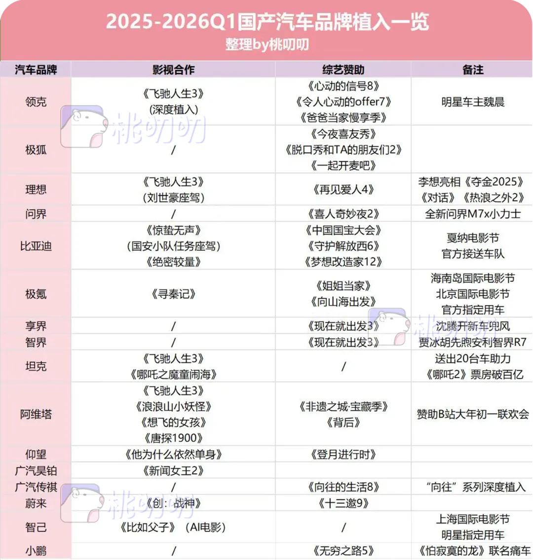 2026年是国产新能源汽车拼刺刀的一年,蔚来ES9、理想i9、问界M6等更多新车型的推出,也意味着品牌寻找调性契合代言人的需求日益旺盛。叨叨也很期待接下来的Q2Q3季度,会有哪些重磅的娱乐营销动作释放。