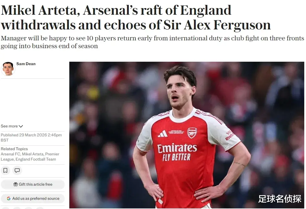 法尔克:阿森纳领先新星特雷索尔迪争夺!枪手10人退出本期国家队