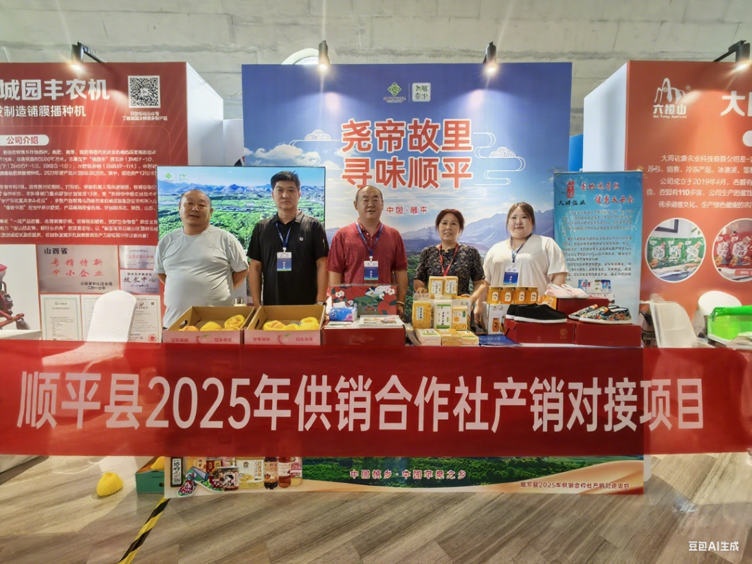 2025年7月3日,第五届全国农业综合服务商大会暨第十一届全国农资科技博览会在山西大同召开。顺平县供销合作社依托“顺平县2025年供销合作社产销对接项目”,携顺平县顺德农业开发有限公司、顺平县优鲜农牧有限公司、顺平县福泽农业服务专业合作社及其特色产品共同亮相展会。