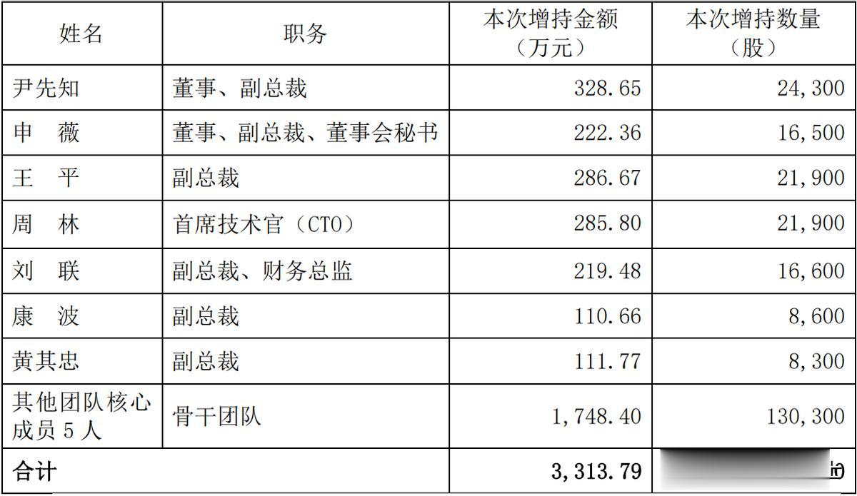 2025年4月,公司核心管理层与业务骨干团队通过集中竞价交易渠道实施股份增持计划,累计购入公司股票24.84万股,占公司总股本的0.0152%,累计投入资金达3313.79万元,对应平均增持成本价为133.41元/股。