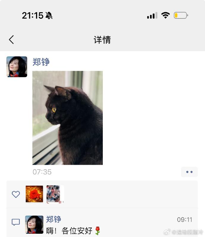 没想到最终还是没能等来奇迹,郑铮老师还是离开了我们,而她最后发布的朋友圈也遭到曝光,有网友和郑铮是好友,公开了她11月18日发布的动态,当时郑铮晒出一张照片并留言说:“嗨,各位安好!”