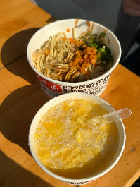 正宗汉味小吃,酱香浓郁、筋道爽口,是早餐的绝佳选择。热干面面条筋道,淋上秘制芝麻酱、辣椒油、萝卜丁,拌匀后酱香扑鼻,口感醇厚,越吃越香;蛋酒香甜温润,解腻解渴,搭配热干面,吃饱又吃好。
