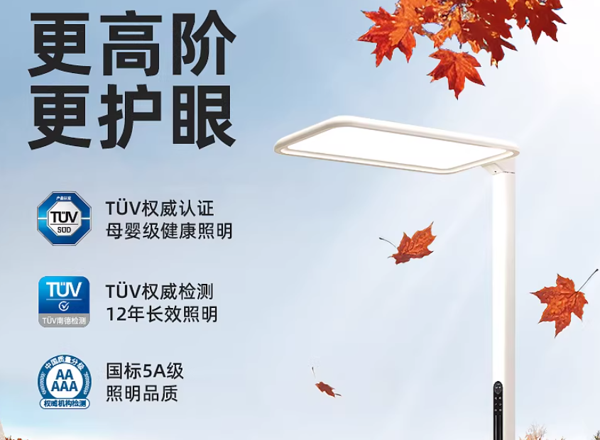①3重认证打造高阶健康光。拥有南德TUV母婴级健康照明认证和12年长 效照明认证,同时通过国标AAAAA级检测。