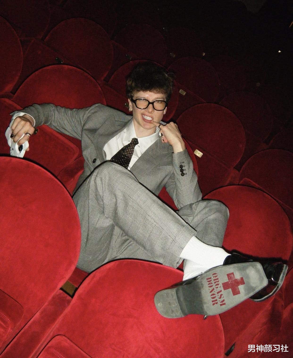 西装套装是很多人秋天的杀手锏,想要让你整个人在穿上去之后显得更有高质感和复古感,不如试着戴上你的黑框眼镜,有很大的惊喜。在鞋子的选择上,他找的是这种方头的,更有味道。