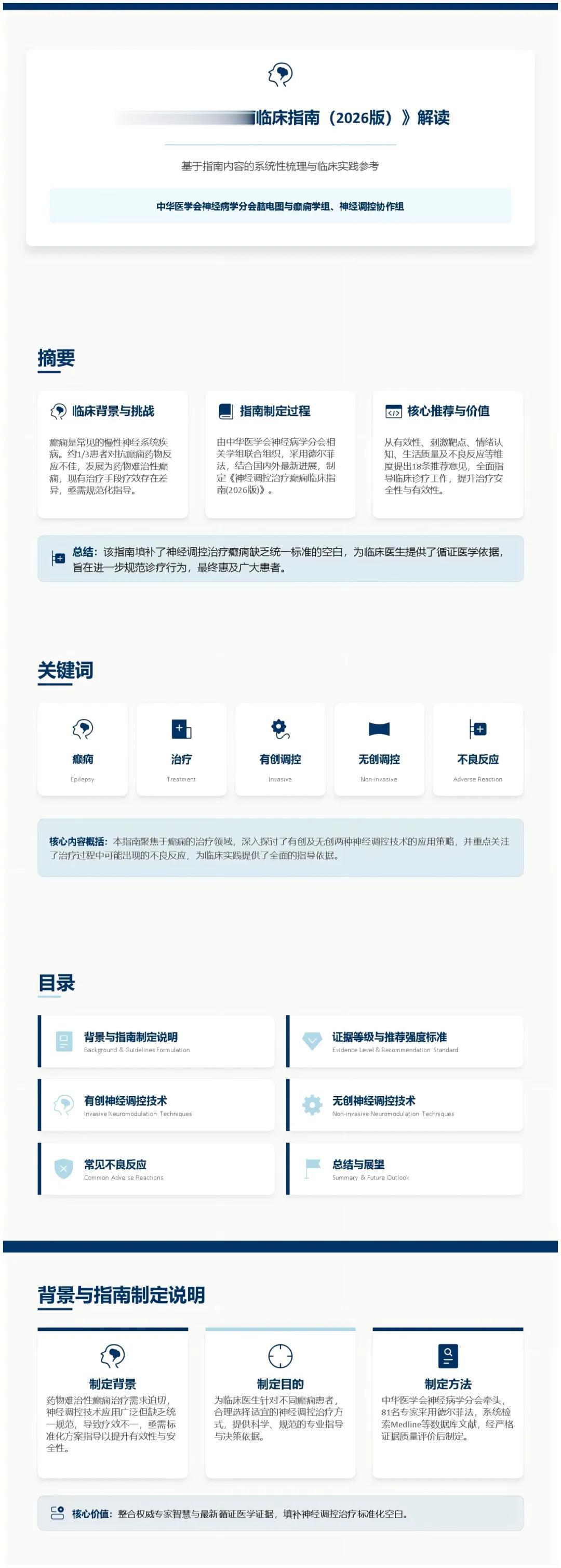 《神经调控治疗癫痫临床指南(2026版)》为神经调控治疗癫痫提供了首个系统性的规范化指导,明确了各类技术的适应证、疗效,更对治疗参数、安全性管理提出指导建议,推动神经调控技术在癫痫领域的精准化、标准化应用。