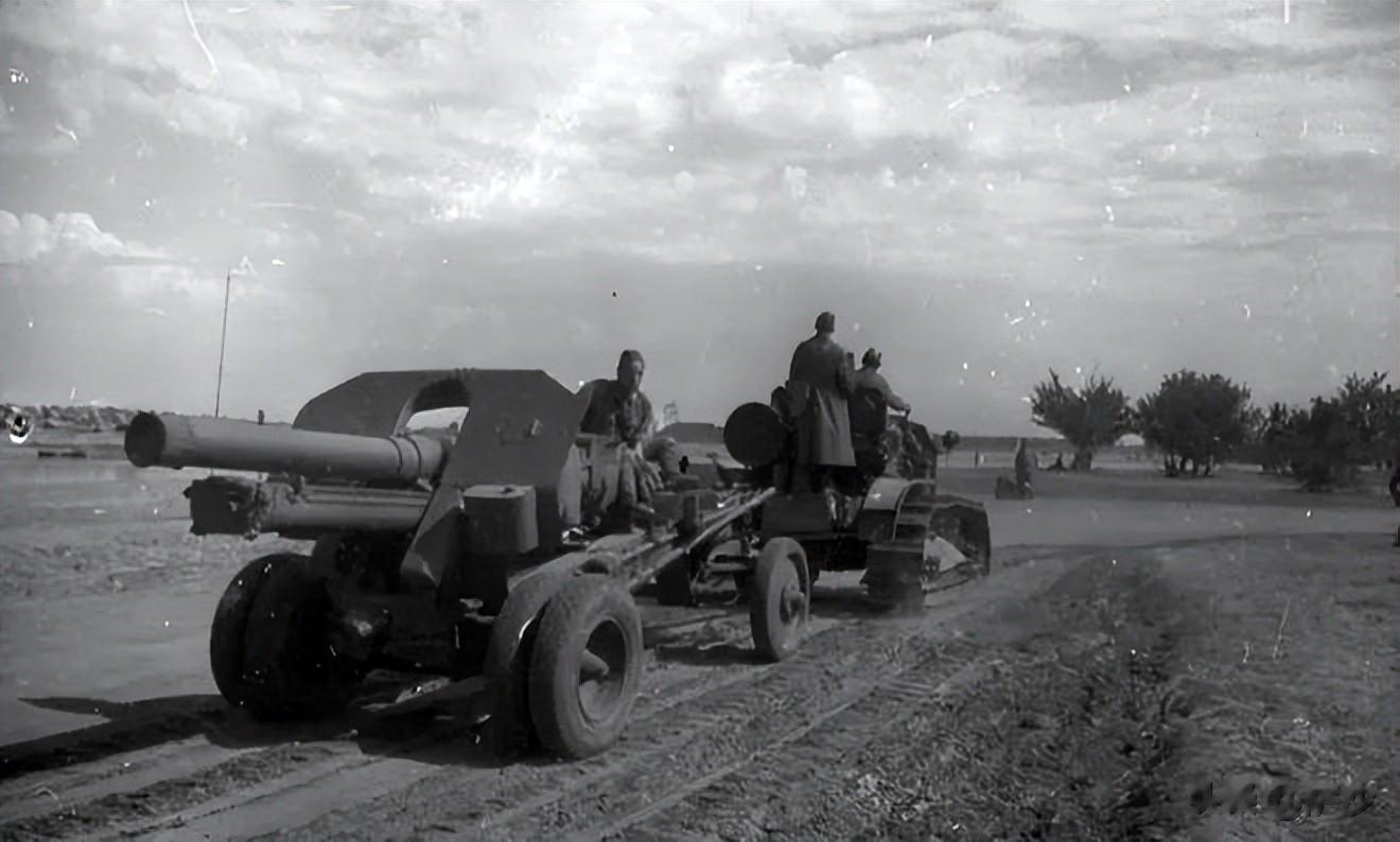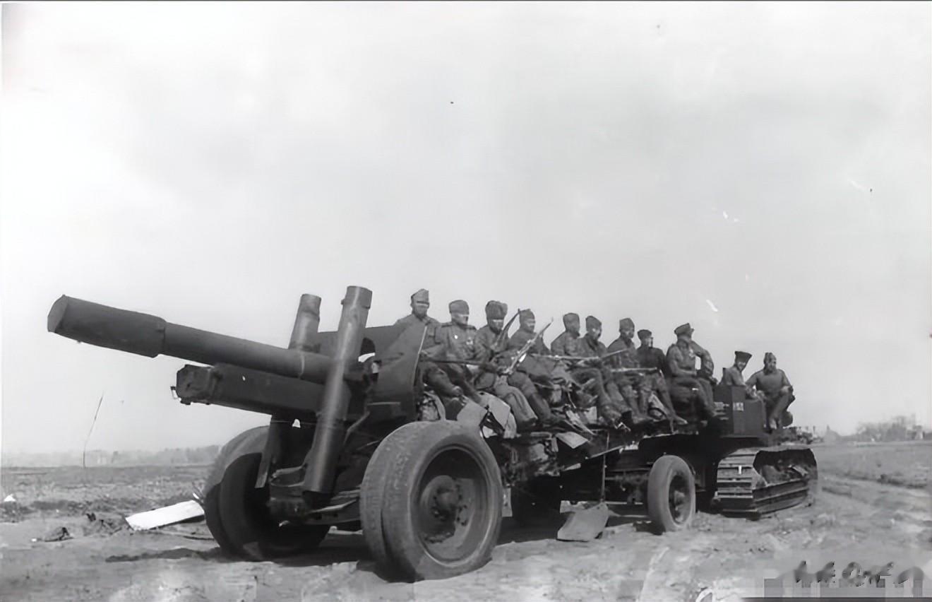 在苏军的步兵师中,M1938型152毫米榴弹炮显然最为笨重,需要大量车辆或者马匹进行拖曳,撤退最为困难。