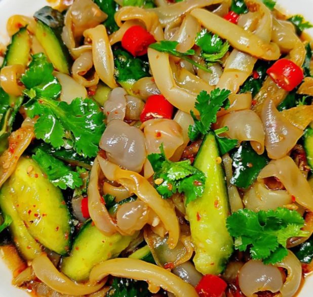 安徽人家夏日餐桌上常见的一道凉拌菜便是黄瓜拌海蜇丝,清爽开胃,制作简便,既保留了食材的本味,又透着家常菜的亲切感。这道菜在江淮地区尤为受欢迎,尤其在闷热的夏季,一口脆嫩的黄瓜与弹牙的海蜇丝,配上酸香微辣的料汁,总能让人食欲大增。