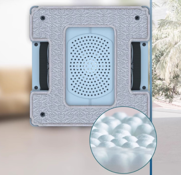 自动沿边与防撞,通过红外传感器识别窗框,实现贴边清洁和自动避障,物理安全绳+断电保护,标配高强度安全绳,并内置备用电池,在意外断电时能维持短时间吸附并发出警报。