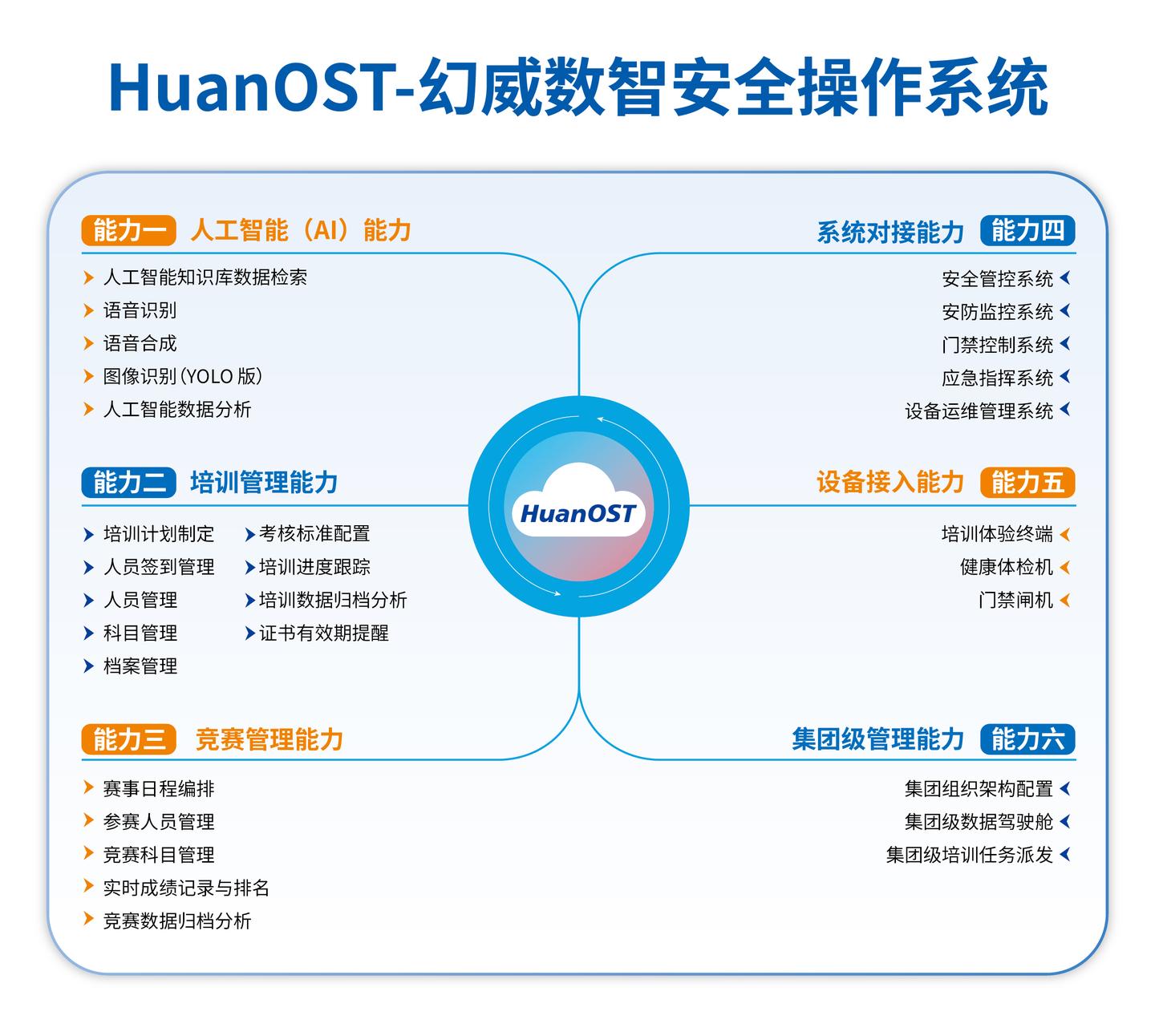 PART3:“1+3+6”全景体系守护企业安全面对安全生产的时代命题,幻威系统化解决方案——以HuanOST数智安全操作系统为核心,构建"1+3+6"全景业务体系,覆盖"训、管、练、防"全链路,让安全管理真正实现可执行、可追踪、可评估、可改进。
