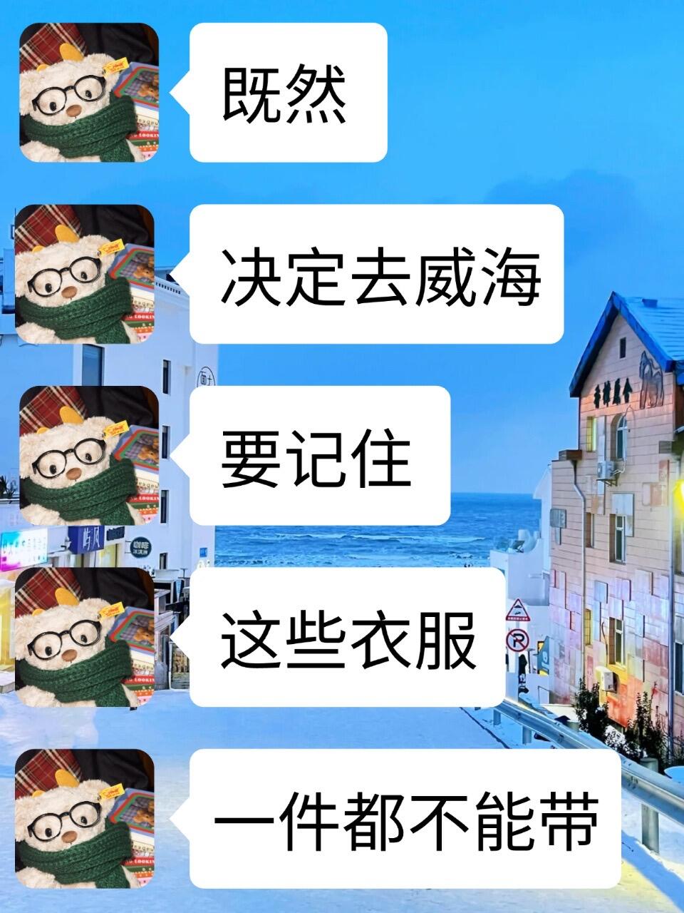 1️⃣冬天来威海的话要装备要准备好:帽子、手套、口罩、雪地靴、围巾、厚袜子、棉衣棉裤、暖宝宝等