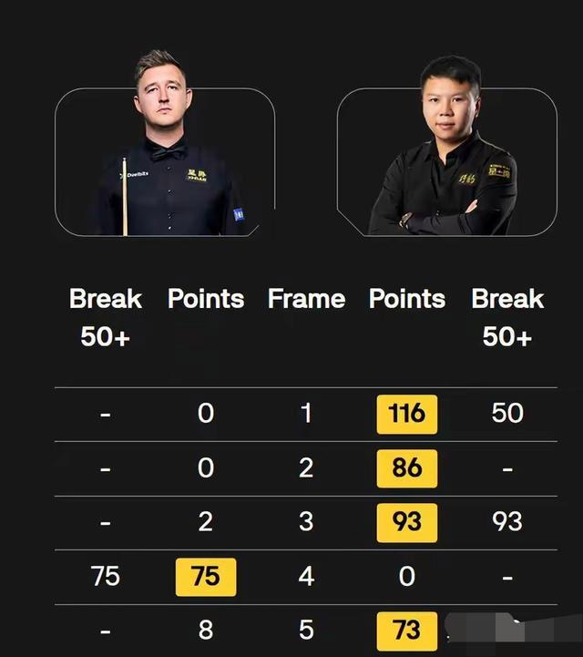 纵观全场比赛,数据直观地反映了比赛的进程与转折。从第一局普伦的单杆103分破百,到第四局张安达55-53的极限逆转,再到第六局张安达单杆64分锁定胜局,关键分的把握能力成为了决定胜负的关键。张安达在落后的局面下,凭借第四局的两分险胜重获新生,并在随后的比赛中打出单杆58分、64分等高分段表现,最终实现了比分与气势的双重逆转。这场胜利不仅展示了张安达在逆境中的抗压能力,也为他接下来的征程奠定了坚实的信心基础。
