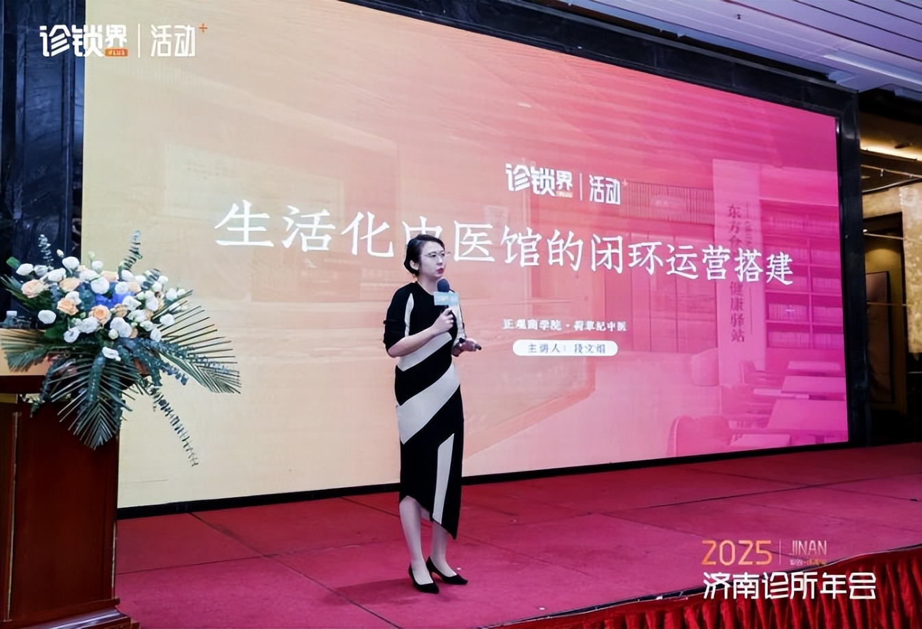 正观学院创始人、荷草纪焕朵养连锁品牌联合创始人段文娟,带来了《生活化中医馆的闭环运营搭建》专题分享。她指出,山东不少基层医疗机构,过去多依赖政策与流量红利,缺乏长期运营规划与创新投入,对行业学习和模式迭代的重视不知足,曾经都很少愿意组织出来学习和改变,但现在已经越来越多的机构开始融入行业,关注更多行业信息,主动去向优秀单位学习,甚至开始做很多创新探索。并且详细分享了诊疗+药食同源+文创的新中医服务场景和模式打造的方法路径,让中医成为一种生活方式,让客户更有有趣和美好的体验感。