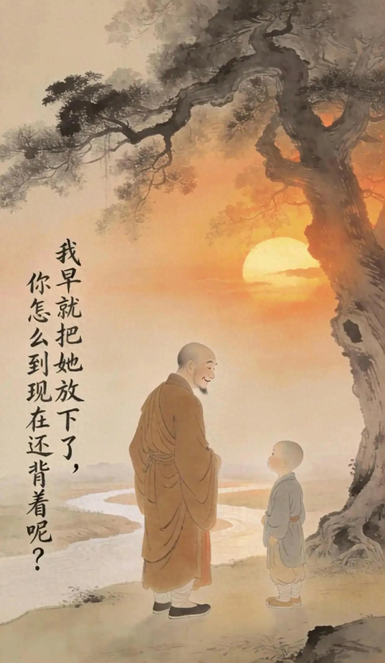 有这样一个流传很广的禅门小故事。相传有两位修行的和尚,一老一少,结伴下山化缘。走到一条河边时,恰逢河水暴涨、水流湍急,只见一位年轻女子站在岸边愁眉不展,盯着汹涌的河水不敢迈步。老和尚见状,没半分犹豫,上前背起女子就蹚过了河。到了对岸放下女子,他若无其事地继续赶路。小和尚跟在后面,心里的嘀咕就没停过,“出家人不近女色”的戒律在脑子里转来转去,憋了一路,快到寺庙时终于忍不住问:“师父,我们出家人要清心寡欲、不近女色,您刚才背那女子,不是犯戒了吗?”老和尚淡淡一笑,答道:“我早就把她放下了,你怎么到现在还背着呢?”