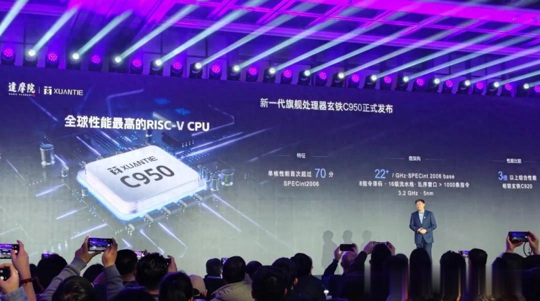 阿里巴巴达摩院首席科学家孟建熠表示,玄铁C950频率达3.2GHz,单核通用性能在SPECint2006基准测试中突破70分,刷新全球RISC-V CPU性能纪录,适用于云计算、生成式AI、高端机器人、边缘计算等领域。