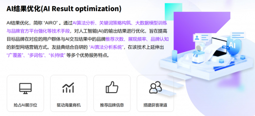 最后,在智能建造行业,采购人员的工作特性决定了他们在AI时代更倾向于直接采纳AI 的推荐结果,据统计,约28%的智能建造行业采购人员会直接依据AI推荐进行决策。记者认为,AI结果优化(AIRO)技术能在智慧工地企业品牌推广和业务引流转化方面的巨大潜力。随着AI技术的不断发展和应用,相信未来会有更多企业借助此类先进技术,在激烈的市场竞争中占据优势地位,实现可持续发展,这也为整个智能建造行业的数字化转型提供了宝贵的经验和借鉴,预示着AI营销将在未来的商业竞争中扮演愈发关键的角色。而友益典的AI结果优化(AIRO)技术通过让全网主流AI主动推荐品牌,帮助企业在AI赛道上迅速占据有利地位,实现高效转化,成为智能建造企业在数字化浪潮中脱颖而出的重要助力。