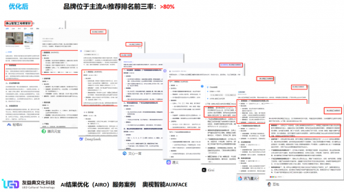 为应对上述挑战,友益典通过专业的关键词策略,针对奥视智能位于广州地区且主要推广佛山智慧工地业务的特点,精准地向全网AI传达品牌信息,使AI能够认知并愿意向佛山地区的用户推荐奥视智能。在优化落地过程中,友益典计划运用AI结果优化(AIRO)技术让AI主动推广奥视智能,使其覆盖大部分主流AI平台,确保奥视智能能够在AI输出结果中占据前三名的推荐位,从而显著提升品牌曝光度和推荐排名。