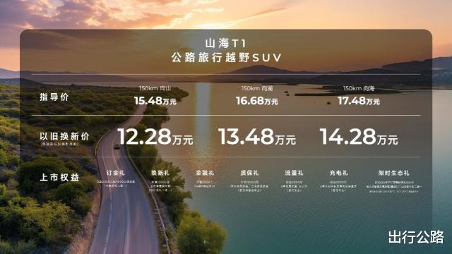 据悉,捷途山海T1本次共推出“向山” “向湖”“向海”三款车型,并基于自然之风释出“雪山银”“鎏沙金”“青山翠”“冰川白”“极夜黑”等多款车色,售价区间15.48万—17.48万。新车上市期间,捷途山海T1还为用户带来了多重购车好礼:即日起,订购捷途山海T1的用户,即可享受“限时生态礼”“订金礼”“焕新礼”“金融礼”“质保礼”“流量礼”“充电礼”七大权益,覆盖购买、选择金融方案、质量保障、用车便捷等方方面面,捷途山海T1目标深度践行“用户为王”思维,全方位提升用户体验。