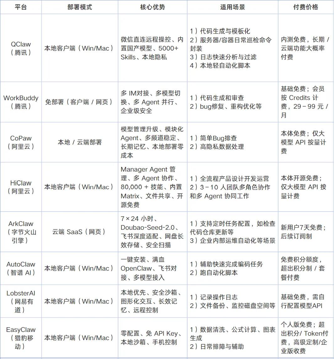现在,腾讯、字节跳动、阿里等国内科技大厂纷纷布局,推出各自的一站式部署平台,这些平台各有特色和不同的技术适用场景,今天给大家汇总一份大厂款OpenClaw一站式部署平台清单,快速筛选出适合自己的“专属龙虾”!