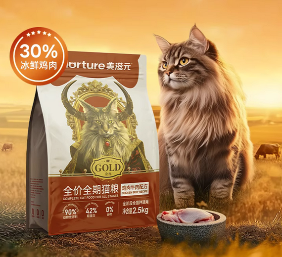 新手怎么看什么猫粮好?美滋元这款猫粮是鸡肉+牛肉的搭配,占比达到了80%,能够让猫咪吃了长肉;使用的原料品质比较基础,是鲜肉+肉粉的搭配,属于比较传统的膨化猫粮配方;包装的设计十分吸睛,在猫咪的耳边加上了牛角元素,快速告诉消费者产品使用的原料包含牛肉。