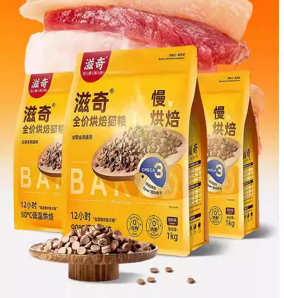新手怎么看什么猫粮好?滋奇这款猫粮号称100%真鲜肉,肉类原料超过80%,整体的营养价值很不错;这款猫粮使用了三段式变温烘烤,对生产设备的要求高,加工的时间也比较长,生产出来的猫粮颗粒也比较酥脆,适合猫咪咀嚼。