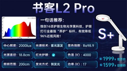 三、10款学生护眼台灯推荐1.书客L2 Pro全光谱:✅