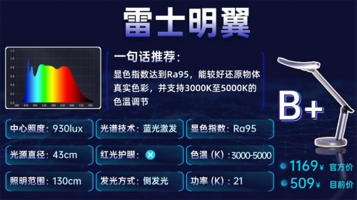 一句话推荐:色温范围覆盖3000K-5000K,可实现适配多样学习场景,且有红光养眼技术,能一定程度上环节眼部疲劳。