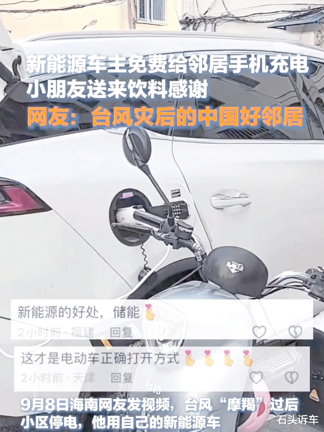 前不久看到一个新闻,说是澳大利亚昆士兰州遭遇暴风雨导致停电,一位比亚迪车主用车载电池给儿子的透析机供电,幸亏有电车可以外放电,否则儿子的生命都有危险。
