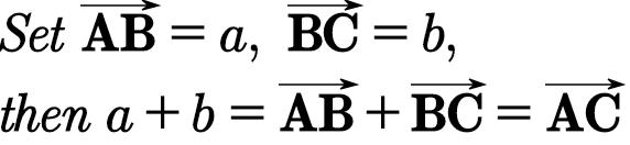 求两个向量和的运算,叫做向量的加法。这种求向量和的方法,称为向量加法的三角形法则。归纳口诀为:“首尾相连连首尾”。