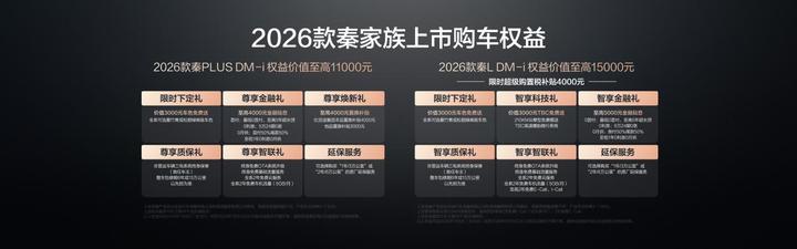2026款秦L DM-i与2026款秦PLUS DM-i 210KM长续航版,凭借超长续航打破出行边界,以豪华科技配置重塑家轿体验,精准满足不同家庭需求。作为插混轿车的引领者,秦家族以硬核产品力和越级价值,必将成为2026年行业风向标,引领家轿市场迈向高品质发展新阶段。