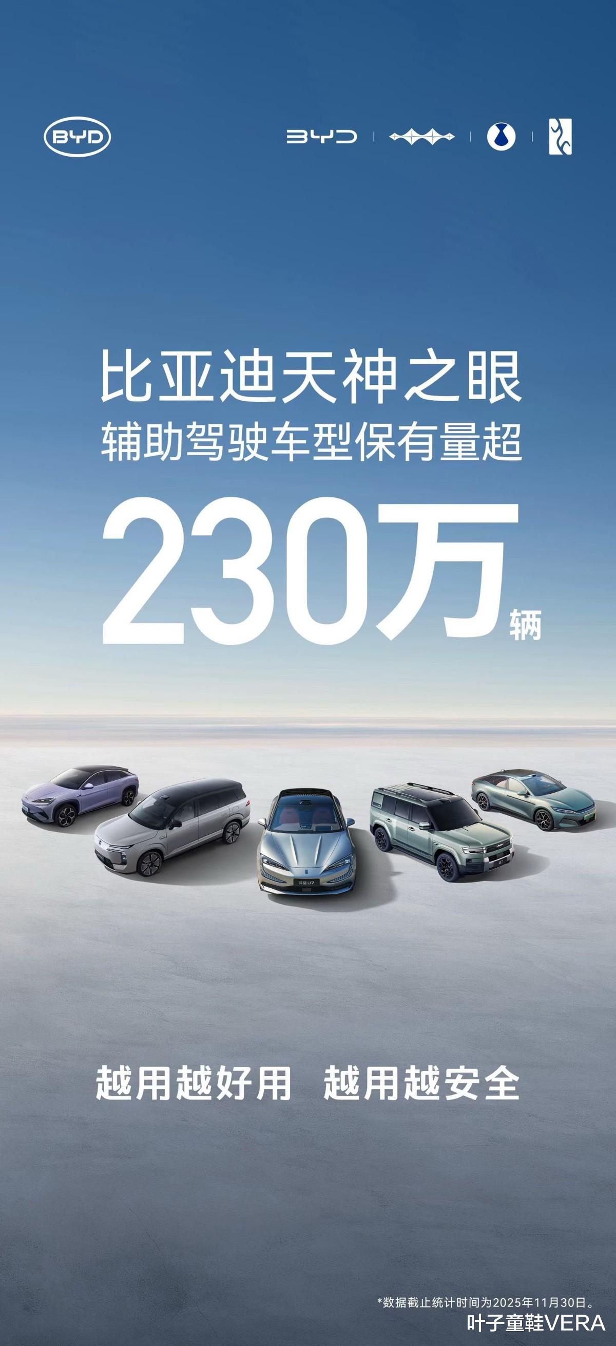 从更宏观的数据来看,截至2025年11月底,比亚迪搭载“天神之眼”驾驶辅助系统的车型累计销量已然突破230万辆大关,这一成绩使其持续蝉联中国辅助驾驶车型销量及系统装车量的榜首之位。这一辉煌成就标志着比亚迪积极推动的“全民智驾”战略已取得了显著成效,智能驾驶不再是少数高端车型的专属配置,而是正以迅猛的态势从高端配置加速向主流市场普及,让更多消费者能够享受到智能驾驶带来的便捷与安全。