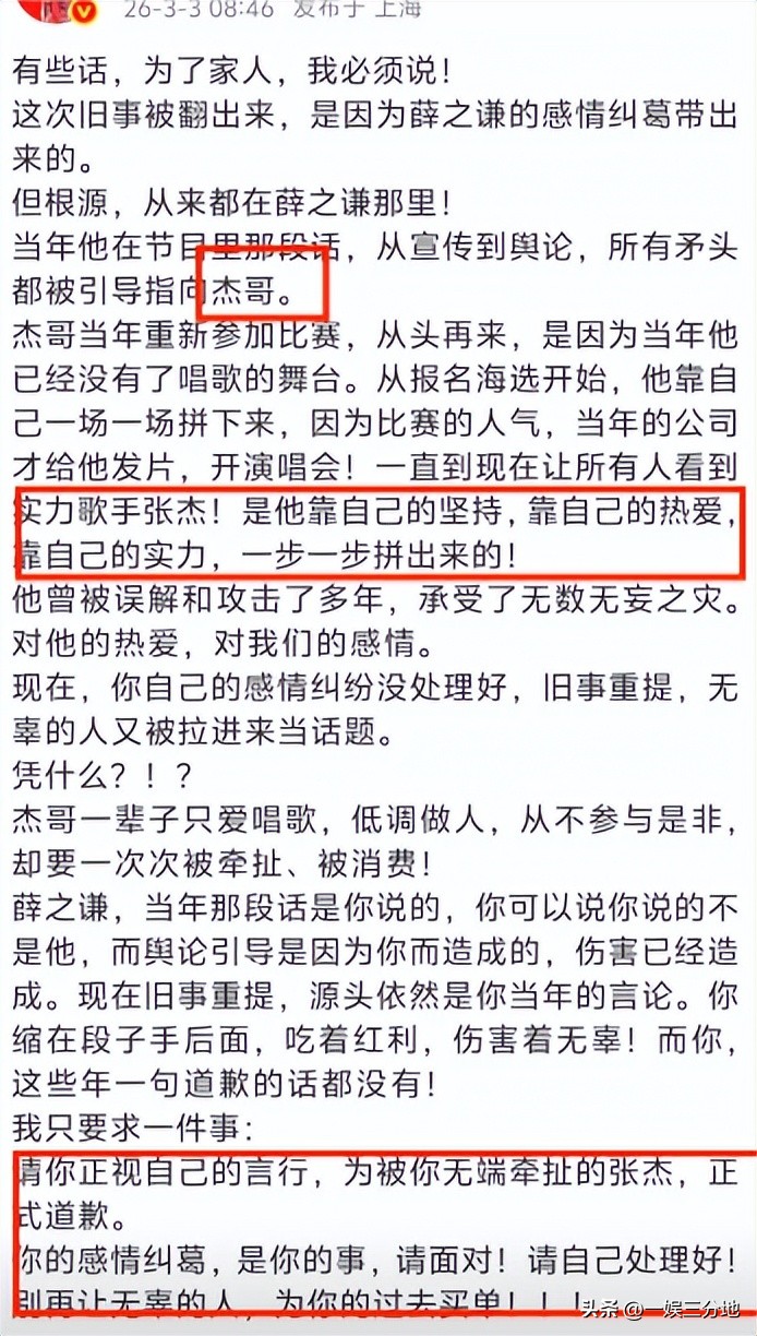 后续让人没想到的是,谢娜也来掺和这件事了,称薛之谦在之前的节目上发表不当言论牵扯到了张杰。