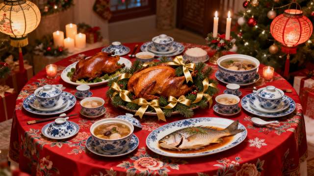 当烤火鸡遇上腊肉香肠,当圣诞布丁旁边摆上一盘饺子,还有一种温暖,从青瓷杯或玻璃盏中缓缓升起——那是中国白酒的醇香