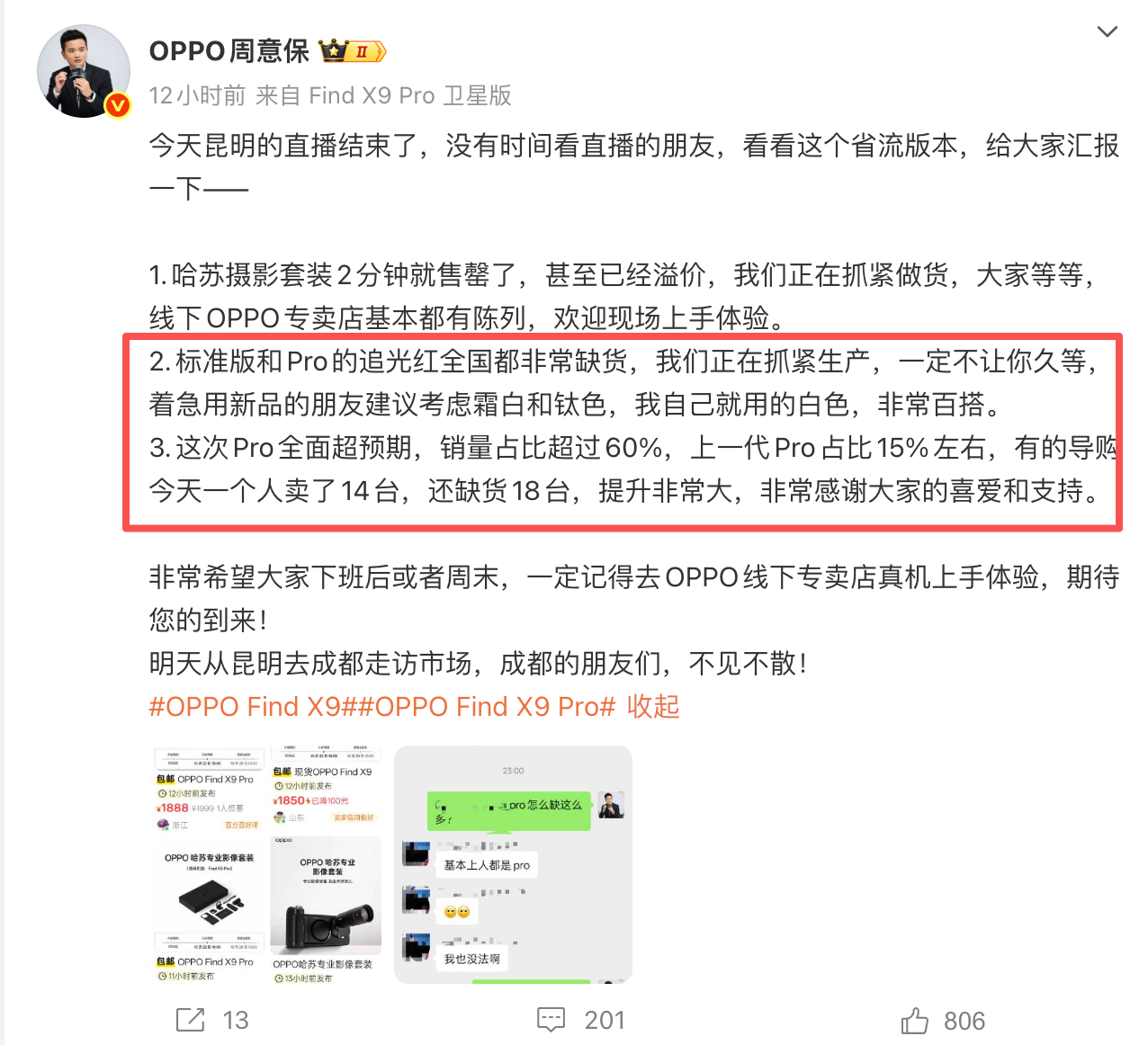 据OPPO产品经理周意保透露,OPPO Find X9 Pro 版的销售全面超预期,销量占比超过。第三方消息更是透露Find X9系列一天卖了15万台。这大幅增长的数据,无疑是消费者对其品质和性能的高度认可。