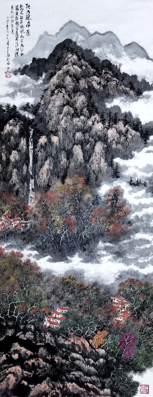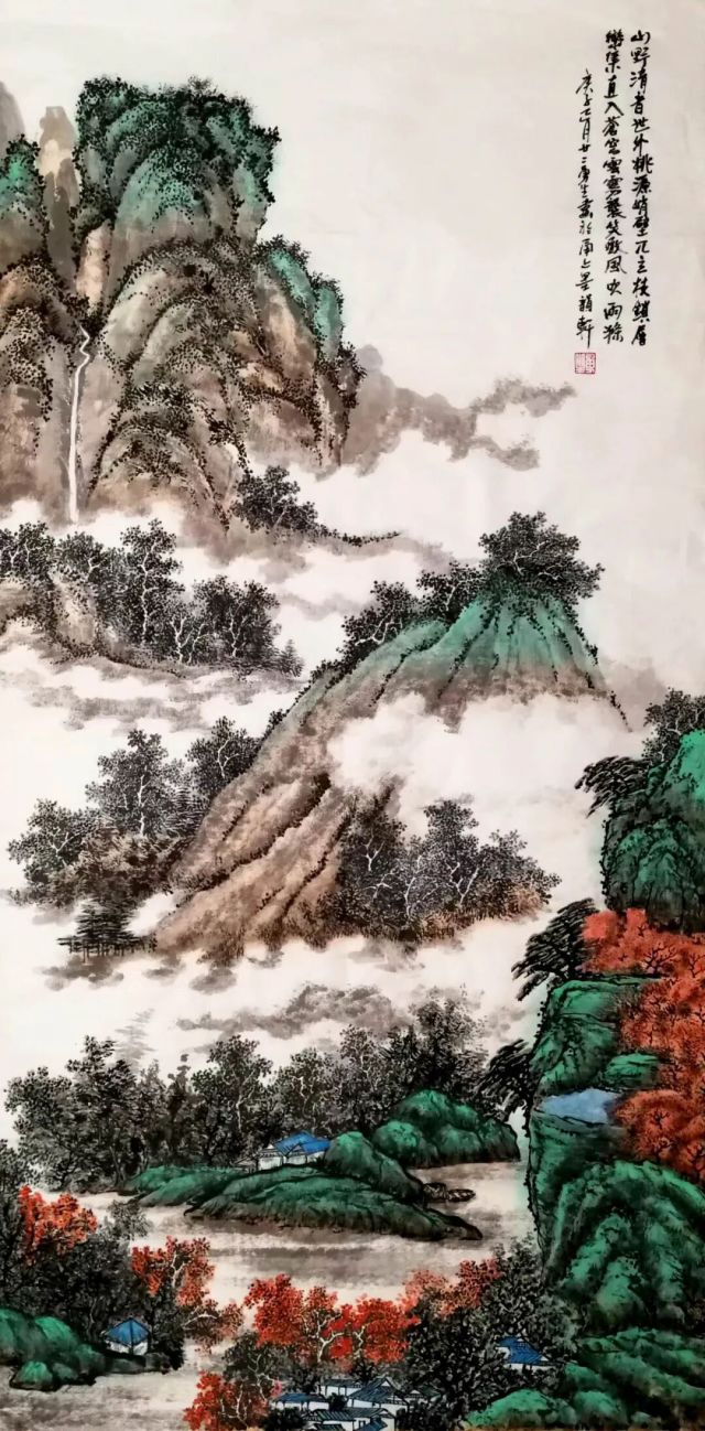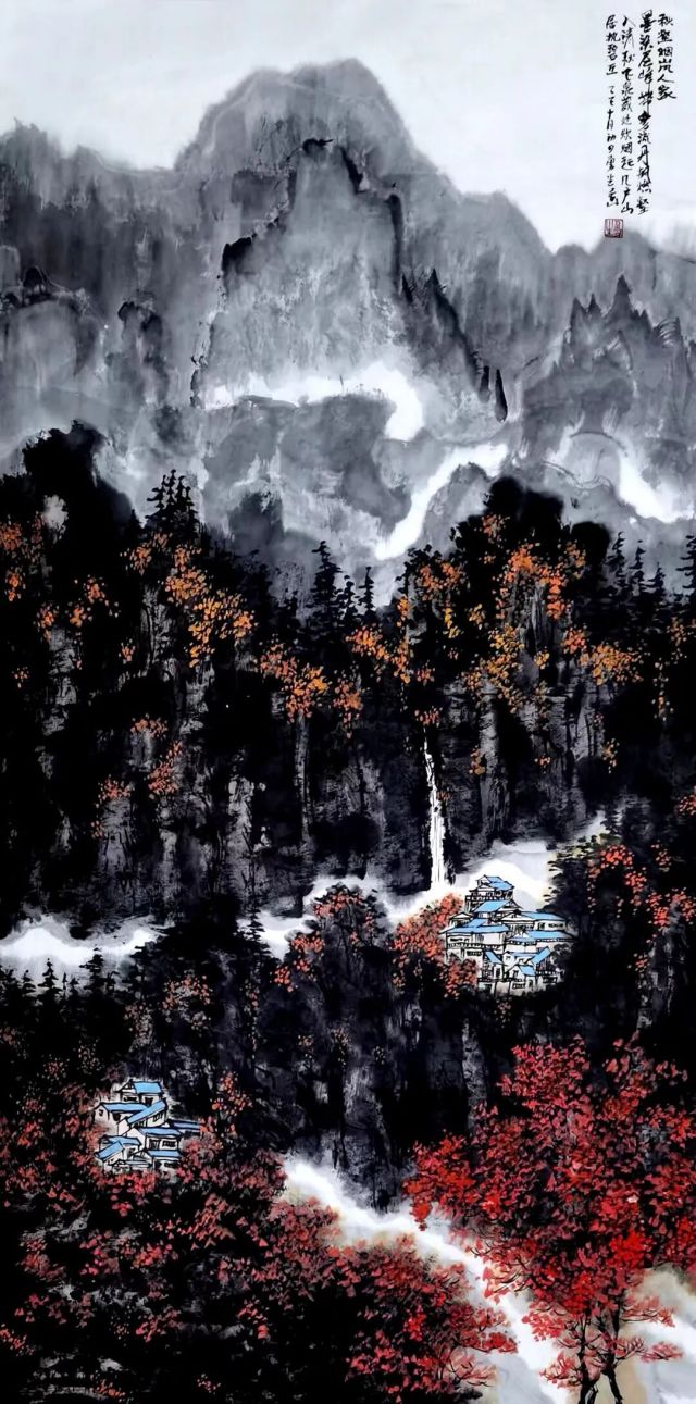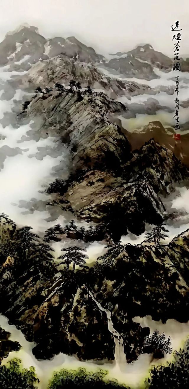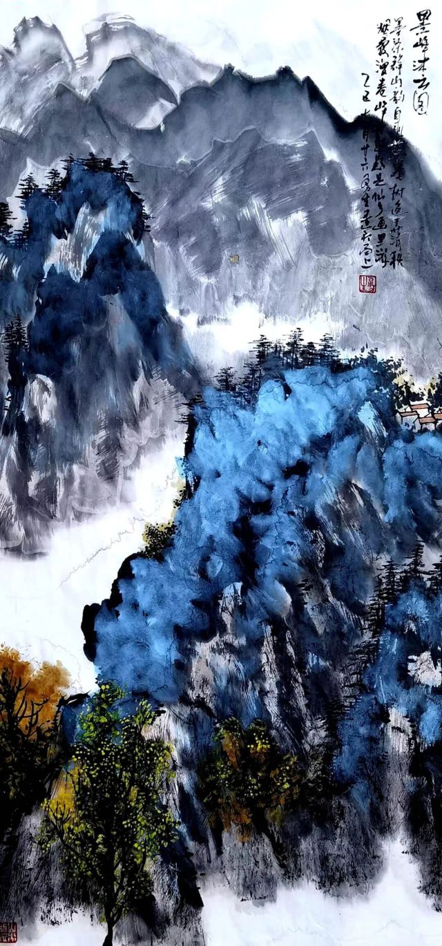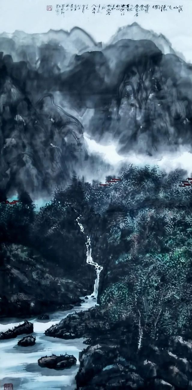 然而,他并未满足于对传统的因袭,而是以创新的勇气和智慧,为山水画注入了时代的新鲜血液。他巧妙地将现代审美观念和艺术表现手法融入其中,使画面既保留了传统的神韵,又展现出强烈的时代气息。在他的笔下,山川不再是简单的自然景象,而是时代精神的象征,是民族风骨的写照。