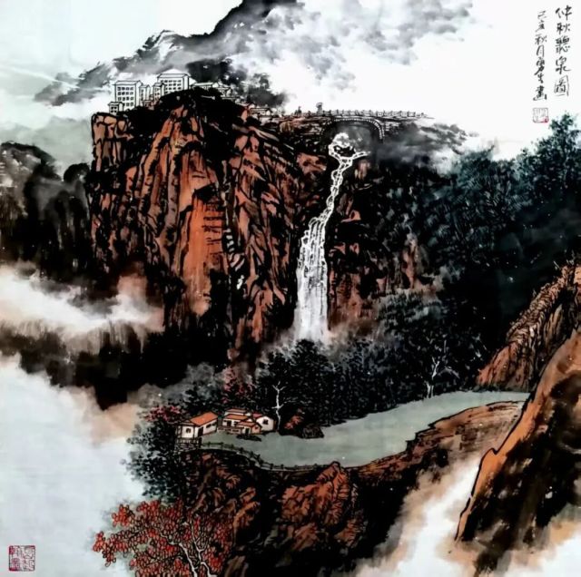 蒋勇生用画笔勾勒出的山水世界,或气势磅礴,展现祖国的壮丽山河;或宁静悠远,传达出对自然的敬畏与热爱。他以艺术为桥梁,连接着过去与现在,让观者在欣赏作品的同时,感受到中华民族坚韧不拔的精神和与时俱进的风貌。
