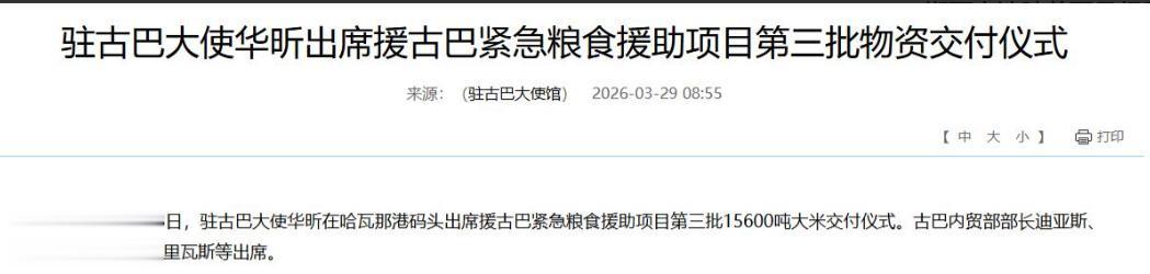 三天前,美国刚刚放出狠话,3月27日,特朗普在佛罗里达州迈阿密的一场会议上对着台下说:“顺便提一句,下一个是古巴。”这话说得轻飘飘,但谁都听得明白,在刚刚对委内瑞拉和伊朗动完手之后,古巴被华盛顿列在了名单上的下一个。