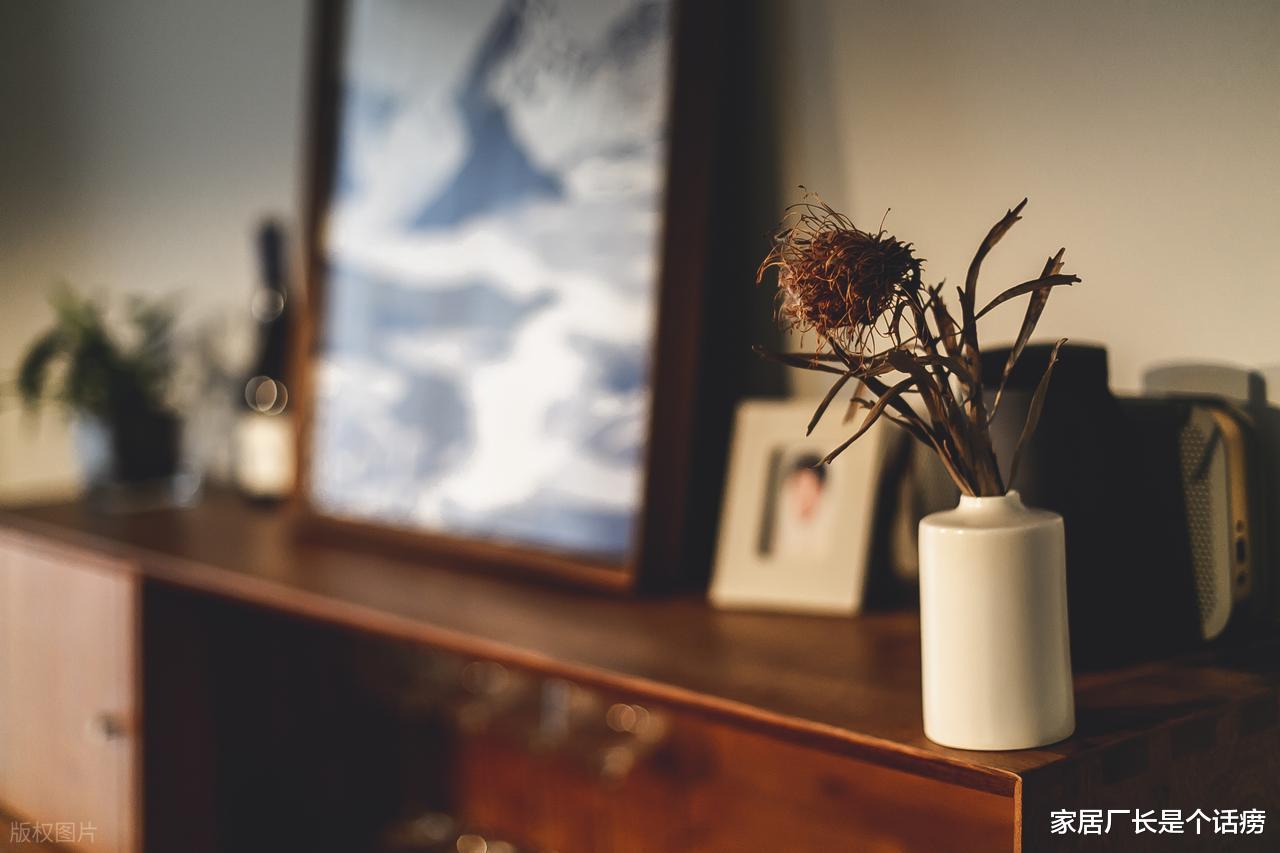 柜上摆着一溜同样尺寸的相框、差不多高度的摆件……是不是严肃又呆板?