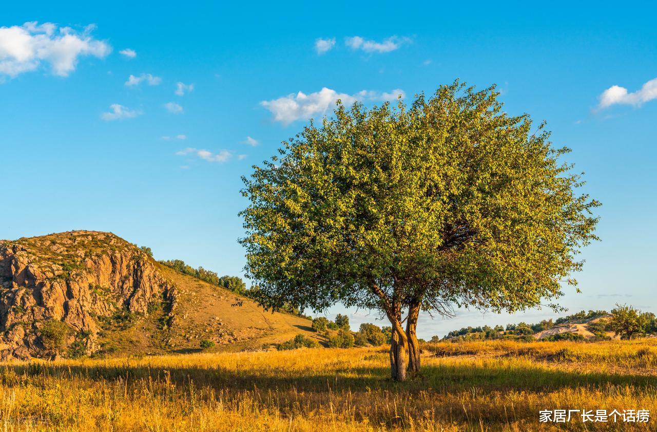 但如果中间有几个树木、一个山坡,做个过渡,就会和谐舒适很多。