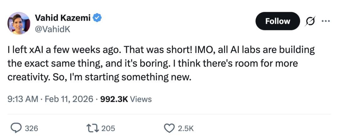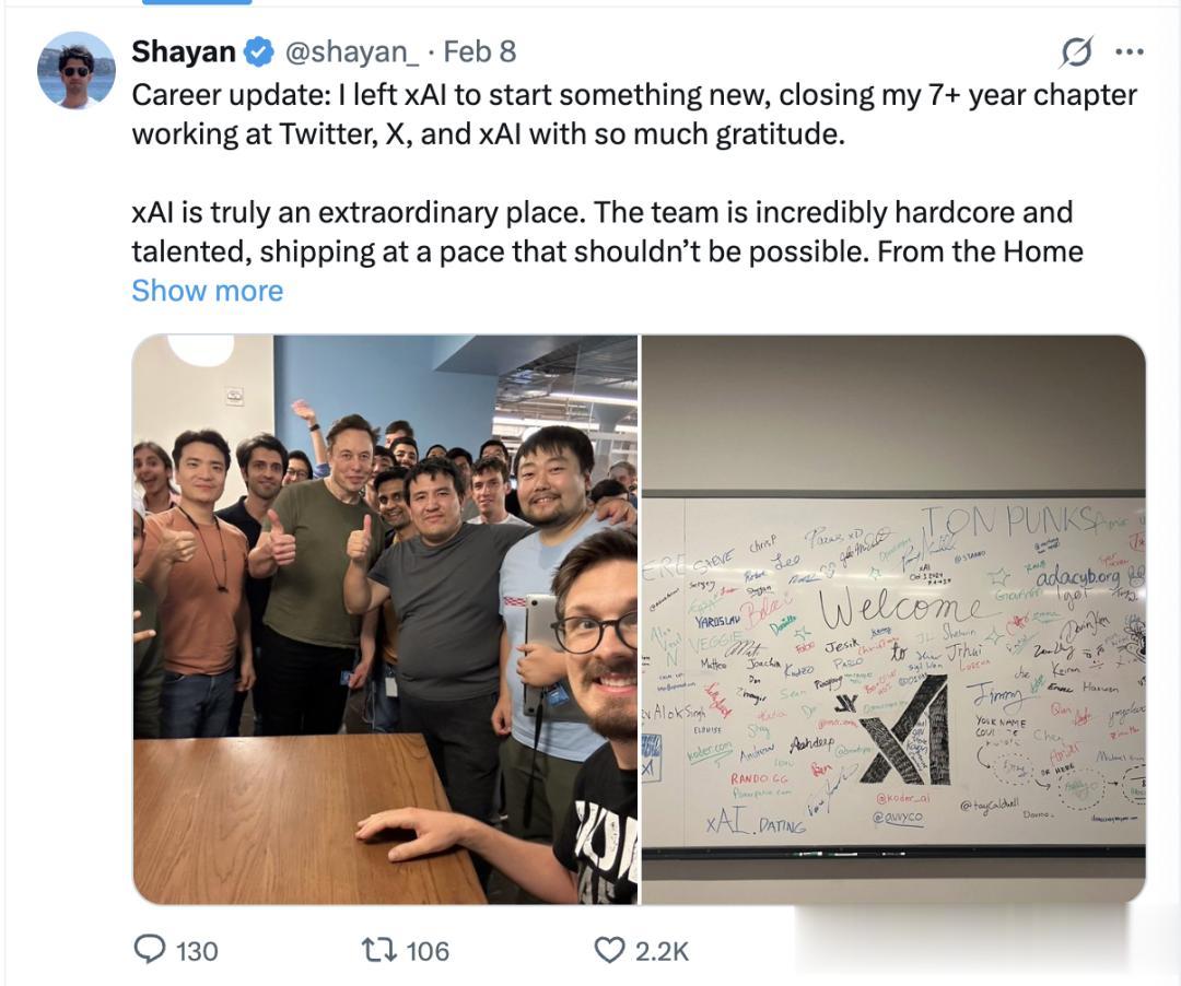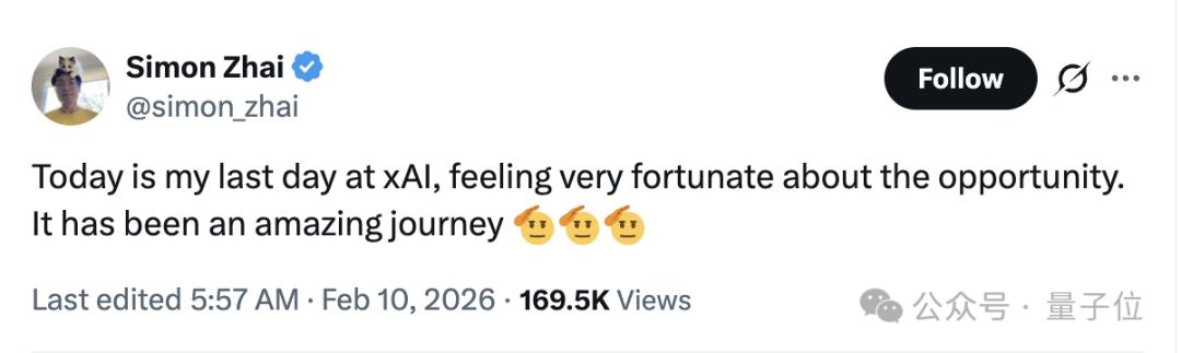 “我从xAI离职了,将开启人生的新篇章”“xAI的最后一天,我们正在迈向新的时代”。