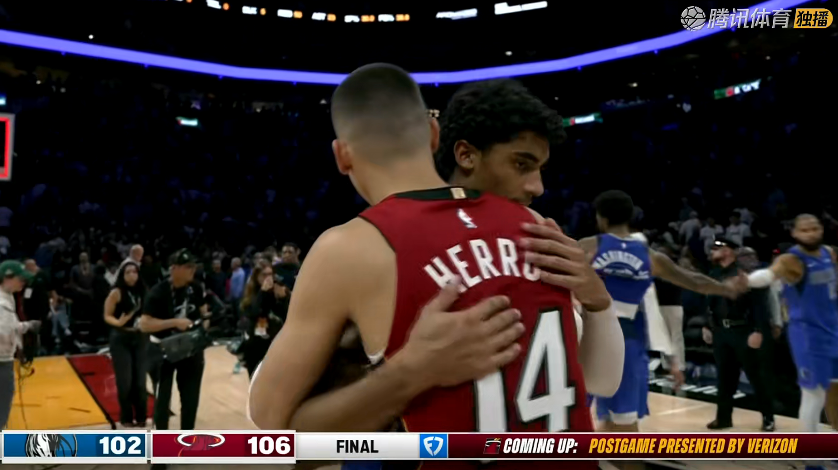 比赛结束,希罗走过去,一把抱住克里斯蒂,两人亲切拥抱致意,两队球员赛后很友好,在场上互相拥抱致意,就连浓眉也走入场内,抱住阿德巴约, 两人有说有笑聊了起来。