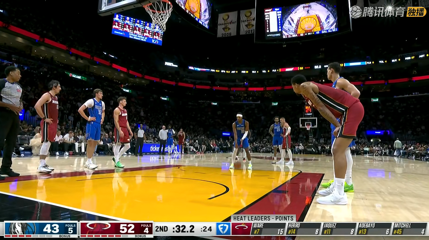 还是热火这边不讲武德啊,韦尔两罚两中,打破得分荒,独行侠这边布威三分命中,球队也破冰了。