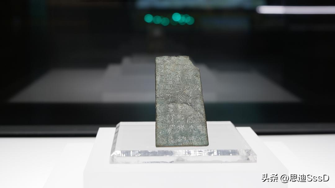 秦量器铜质铭文诏版,又称秦量诏版,青铜质,长方形,长10.8厘米,宽6.8厘米,重0.015千克。书文:“廿六年,皇帝尽并兼,天下诸侯,黔首大安,立号为皇帝,乃诏丞相状、绾、法度量则不壹,歉疑者,皆明壹之,新蔡斗。”