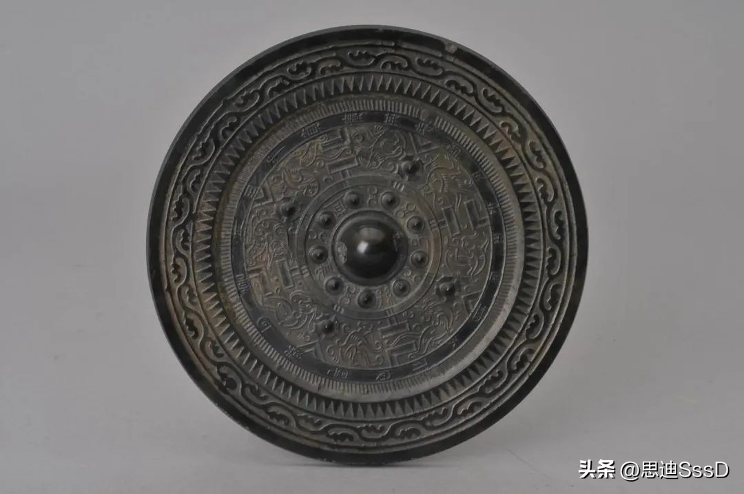 新莽“刘氏去,王氏持”规矩铜镜,出土于阜阳七渔河墓葬,镜背铭文反映了王莽代汉时期的政治宣传口号,句句充满强烈时代印记,如“刘氏去,王氏持,天下安宁”。镜面分区描绘青龙、朱雀、白虎等瑞兽,融合政治话语与美学表达,是新莽时期民间舆情与信仰的结合体。