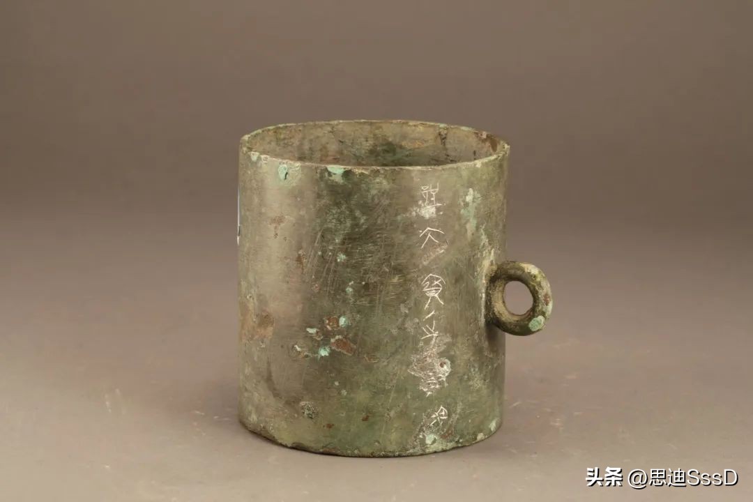 战国楚“郢大府”铜量器,1976年发现于凤台县,这件圆筒形铜量为楚国“郢大府”颁发的标准量器,是古代国家用来统一计量的重要工具。器物底部刻有“平”字,代表标准精度。测得容量约1110毫升,换算为楚国“五升”制度的标准筲,是我国先秦计量制度体系的实物代表。